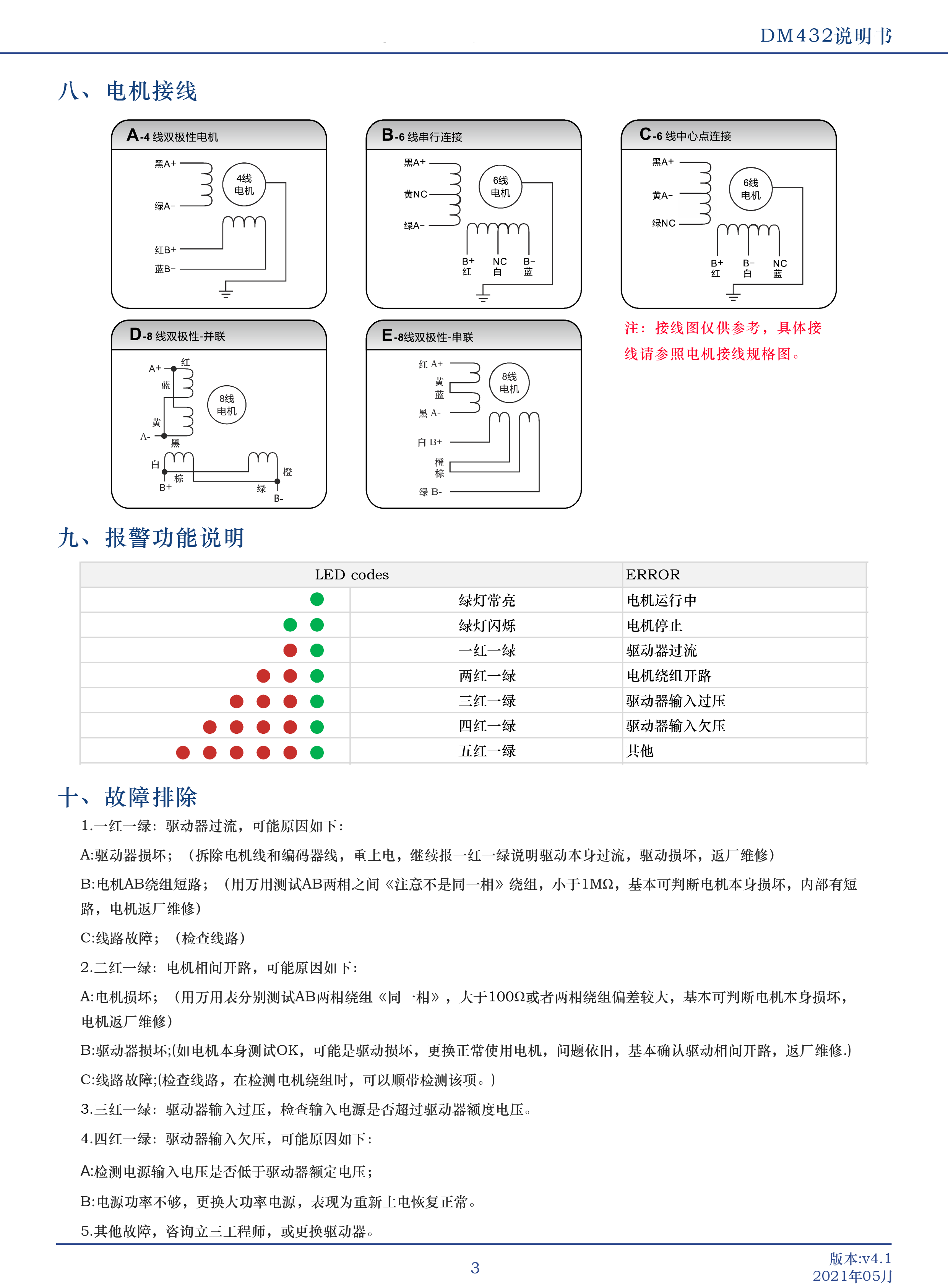 DM432是立成公司潛心研制的基于新一代基于32位DSP技術(shù)的高性能兩相數(shù)字式步進(jìn)驅(qū)動器,驅(qū)動電壓DC8V-36V適配電流 32A以下,外徑42以下各種號兩相混合式步進(jìn)電機(jī)該驅(qū)動器采樣類似伺服的控制原理,獨(dú)特的電路設(shè)計(jì),優(yōu)越的軟件算法處理,使電機(jī)即使在低細(xì)分下也能運(yùn)行平穩(wěn),幾乎沒有振動和噪音,平滑、精確地電流控制技術(shù)大大減少了電機(jī)發(fā)熱,外置16檔等角度恒力矩細(xì)分,最高128細(xì)分,光耦隔離差分信號輸入,抗干擾能力強(qiáng),具有過壓、欠壓、過流保護(hù)等出錯保護(hù)功能。在點(diǎn)膠機(jī)、激光雕刻等中、低速應(yīng)用領(lǐng)域,其平穩(wěn)性、振動、噪聲性能優(yōu)勢明顯,可大大提高設(shè)備性能。