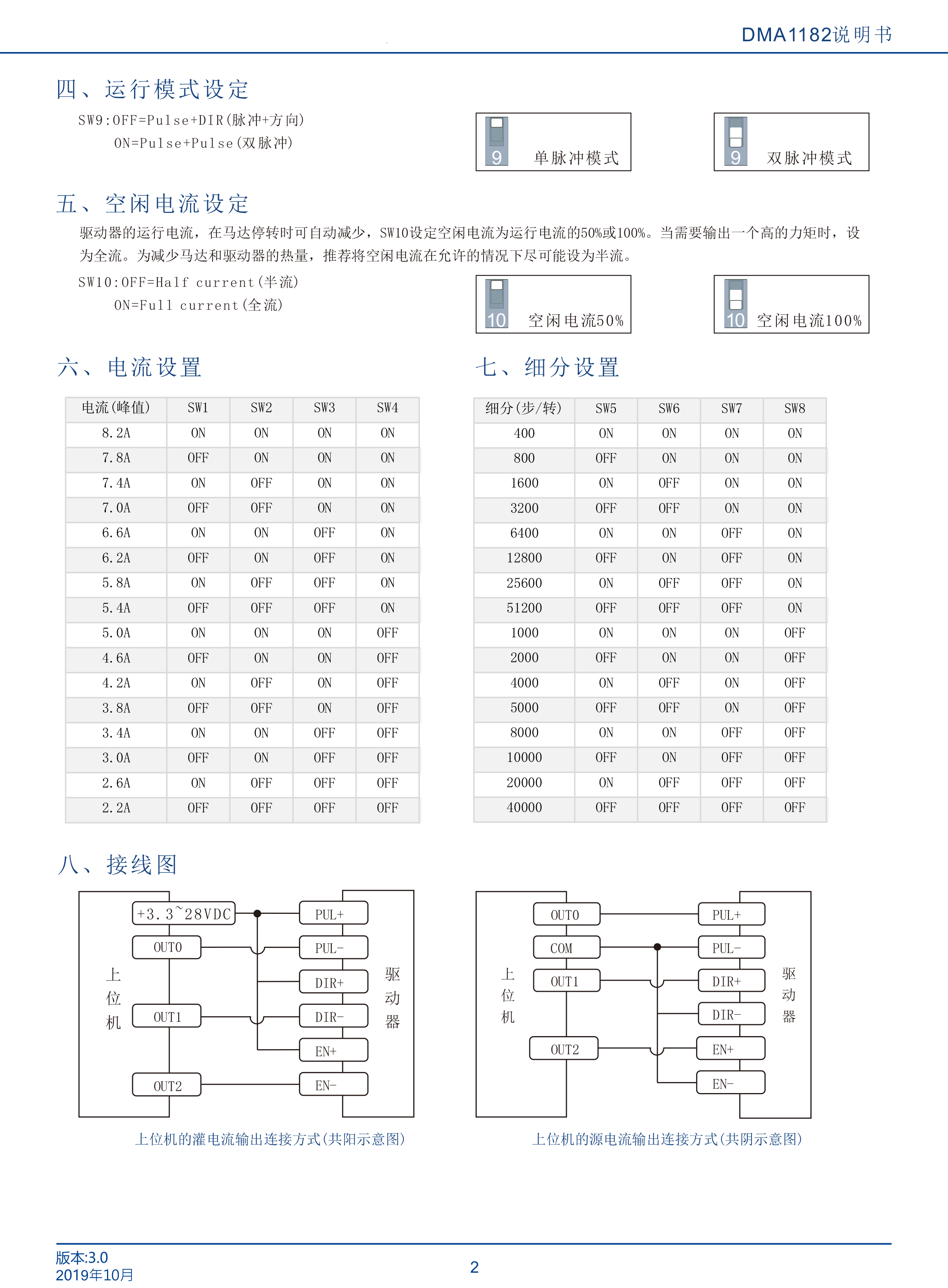 DMA1182是立成公司最新研制的基于新一代基于32位DSP技術的高性能兩相數字式步進驅動器,驅動電壓AC18-110VAC,適配電流8.2A以下,外徑60 110mm的各種型號兩相混合式步進電機。該驅動器采樣類似伺服的控制原理,獨特的電路設計,優(yōu)越的軟件算法處理,使電機即使在低細分下也能運行平穩(wěn),幾乎沒有振動和噪音,平滑、精確地電流控制技術大大減少了電機發(fā)熱,外置16檔等角度恒力矩細分,最高51200細分,光耦隔離差分信號輸入,抗干擾能力強,具有過壓、欠壓、過流保護等出錯保護功能。在點膠機、激光雕刻等中、低速應用領域,其平穩(wěn)性、振動、噪聲性能優(yōu)勢明顯,可大大提高設備性能。