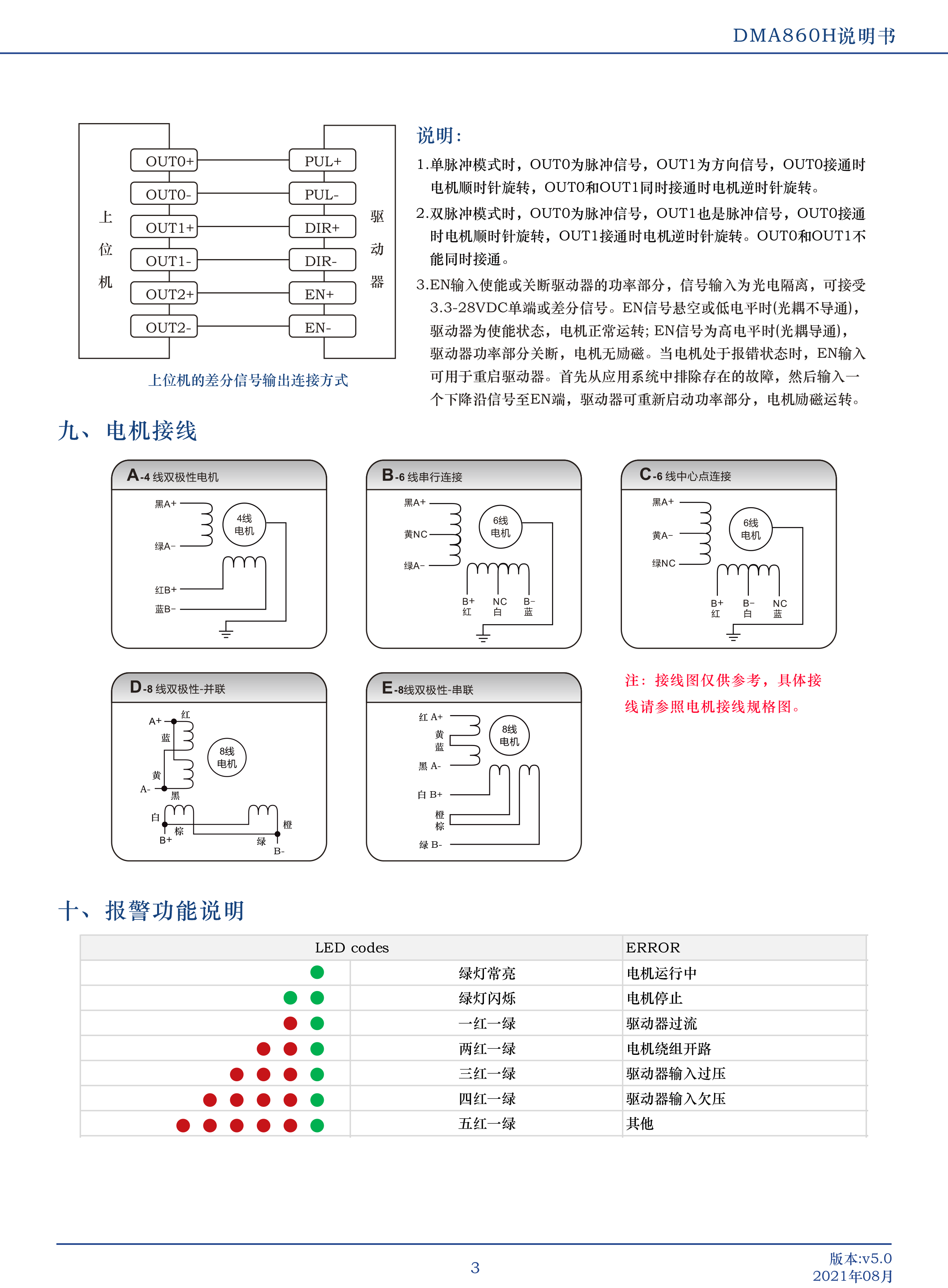 DMA860H是立成公司潛心研制的基于新一代基于32位DSP技術(shù)的高性能兩相數(shù)字式步進(jìn)驅(qū)動(dòng)器,驅(qū)動(dòng)電壓18-80VAC適配電流 8.2A以下,外徑86mm及以上的各種型號(hào)兩相混合式步進(jìn)電機(jī)。該驅(qū)動(dòng)器采樣類似伺服的控制原理,獨(dú)特的電路設(shè)計(jì),優(yōu)越的軟件算法處理,使電機(jī)即使在低細(xì)分下也能運(yùn)行平穩(wěn),幾乎沒有振動(dòng)和噪音,平滑、精確地電流控制技術(shù)大大減少了電機(jī)發(fā)熱,外置16檔等角度恒力矩細(xì)分,最高可調(diào)細(xì)分51200脈沖/轉(zhuǎn),光耦隔離差分信號(hào)輸入,抗干擾能力強(qiáng),具有過壓、欠壓、過流保護(hù)等出錯(cuò)保護(hù)功能。在端子機(jī)、激光雕刻等中、低速應(yīng)用領(lǐng)域,其平穩(wěn)性、振動(dòng)、噪聲性能優(yōu)勢明顯,可大大提高設(shè)備性能。