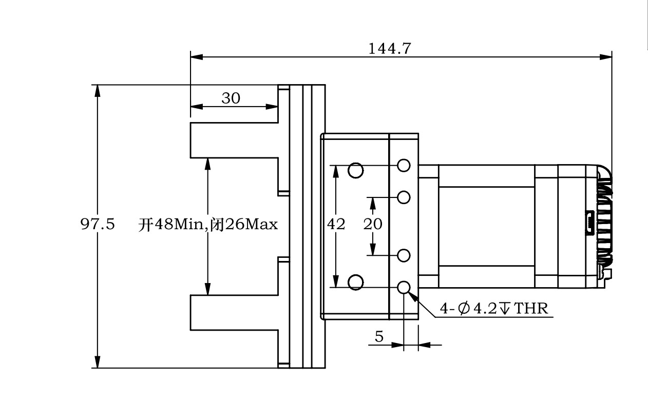 ## 集成一體化優(yōu)勢盡顯 傳統(tǒng)分體夾爪由多個獨立部件組成,如驅(qū)動器、電機、控制器等,各部件之間需要繁瑣的布線和安裝調(diào)試,不僅占用大量空間,還增加了故障風險和維護成本。集成式步進伺服電動夾爪則將這些功能高度集成于一體,體積小巧緊湊。從資料中的尺寸數(shù)據(jù)可知,其整體結(jié)構(gòu)精致,僅重約0.2Kg,能夠輕松安裝在各種自動化設(shè)備上,節(jié)省了寶貴的安裝空間,減少了設(shè)備整體體積,為生產(chǎn)線的布局優(yōu)化提供了便利。這種集成一體化設(shè)計大大簡化了系統(tǒng)架構(gòu),減少了部件之間的連接環(huán)節(jié),降低了因連接松動等問題導(dǎo)致的故障概率,提高了系統(tǒng)的穩(wěn)定性和可靠性,使得設(shè)備運行更加穩(wěn)定高效,有效減少了維護工作量和停機時間。 ## 精準位置控制與快速響應(yīng),遠超傳統(tǒng) 傳統(tǒng)分體夾爪在位置控制精度上往往難以滿足高精度生產(chǎn)需求,其定位誤差較大,容易導(dǎo)致抓取位置不準確,影響產(chǎn)品質(zhì)量。而集成式步進伺服電動夾爪配備了1000線(4000 Counts)編碼器反饋系統(tǒng),能夠?qū)崿F(xiàn)極其精準的位置控制。每旋轉(zhuǎn)一圈,編碼器可產(chǎn)生4000個計數(shù),通過精確的反饋機制,設(shè)備能夠?qū)崟r監(jiān)測夾爪的位置,并根據(jù)預(yù)設(shè)指令進行精準調(diào)整,定位精度極高。在抓取微小零部件時,能夠準確無誤地完成操作,有效避免了因位置偏差導(dǎo)致的抓取失誤。